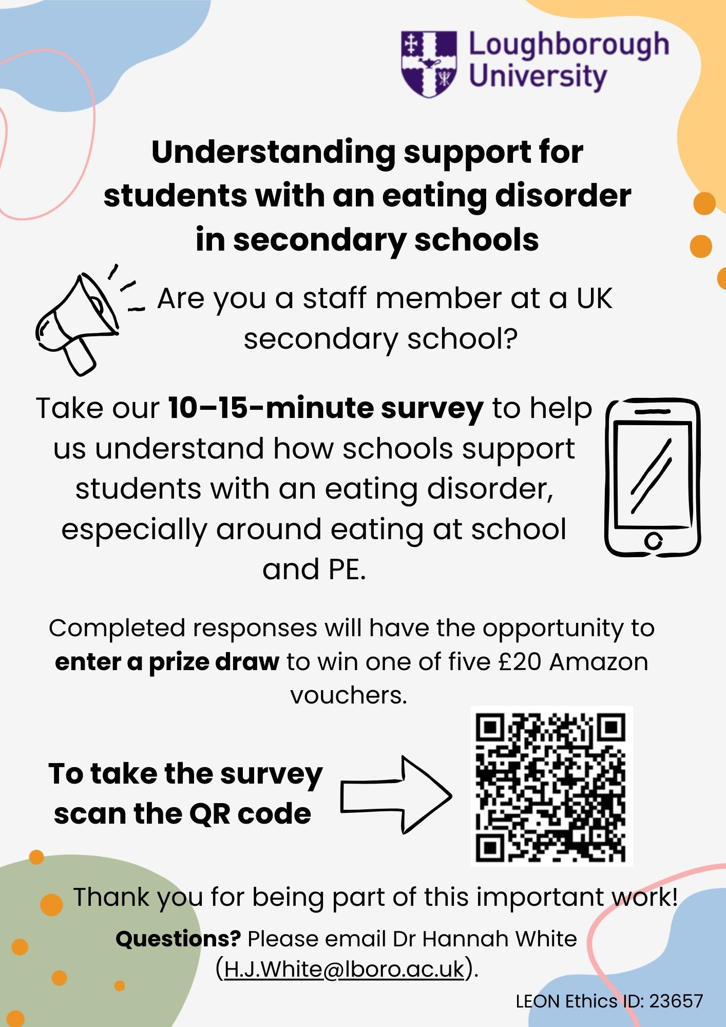 They are inviting secondary school staff to take part in our survey lasting 10–15 minutes which explores support for pupils specifically around eating at school and PE, aspects recognised to be particularly difficult when a young person has an eating disorder.