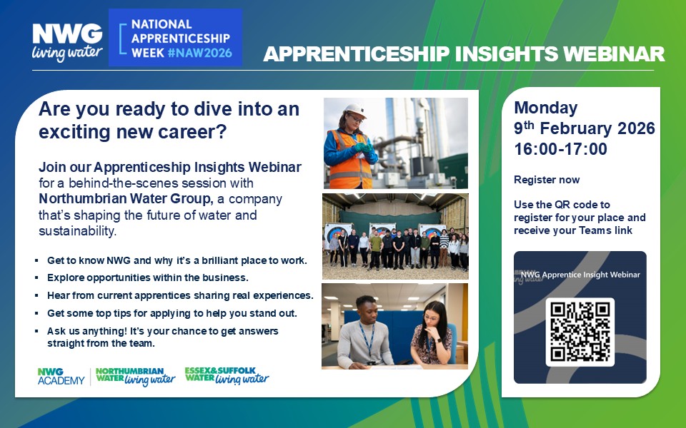 This will be an inspiring look into careers at Northumbrian Water Group and its open to all!